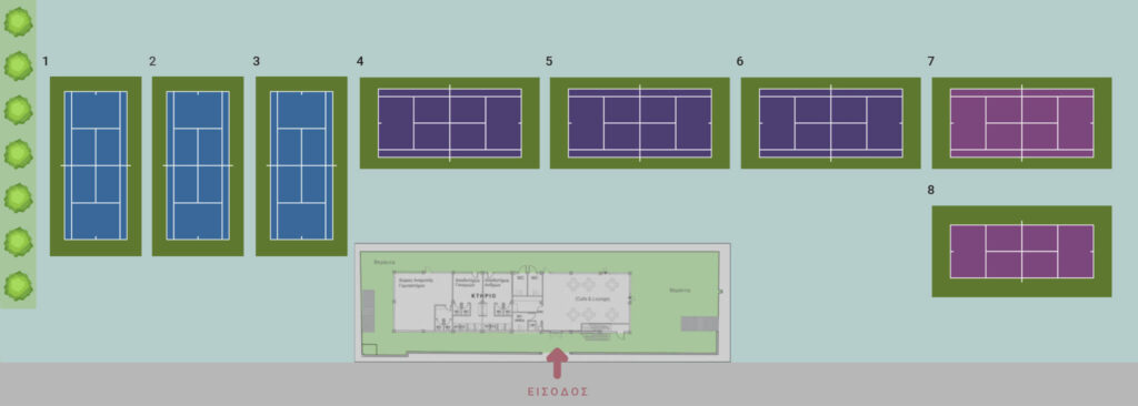 Σε συνεργασία με το Γραφείο Μελετών Λιόντος & Συνεργάτες για την Αδειοδότηση από την Γενική Γραμματεία Αθλητισμού και την εταιρεία Αθλοδομή για τον Σχεδιασμό και την Κατασκευή των γηπέδων εφαρμόζοντας τα προδιαγεγραμμένα υλικά της εταιρείας Casali Sports κατασκευάσαμε 8 πιστοποιημένα ITF γήπεδα 2 εκ των οποίων είναι τα μοναδικά κατηγορίας ITF 3, Class III στην Αττική και το ένα αγωνιστικών διαστάσεων διπλό.